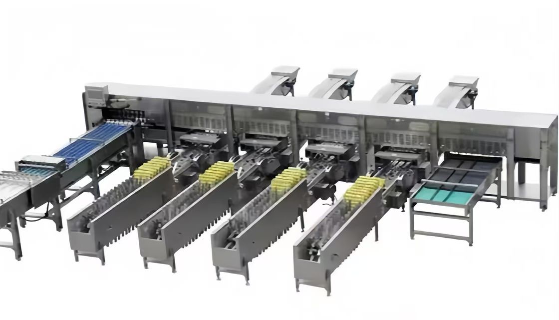 Η μονάδα φόρτωσης αυγών μεταφέρει τα αυγά προς το τμήμα ζύγισης, το σχήμα των κυλίνδρων έχει σχεδιαστεί ειδικά, ώστε να διασφαλίζεται ότι τα αυγά ευθυγραμμίζονται αυτόματα, ώστε να διασφαλίζεται ότι όλα τα αυγά εισέρχονται στο πλυντήριο αυγών σε καλή κατάσταση. Μπορεί να συνδεθεί με τον ιμάντα αυγών απευθείας.